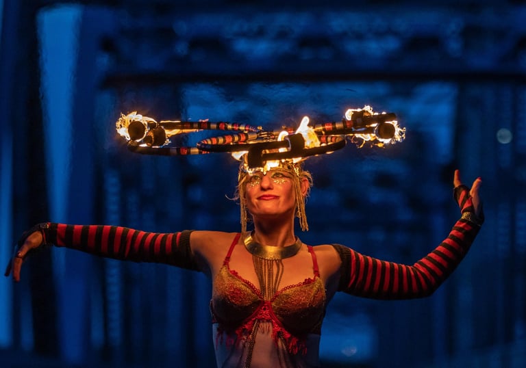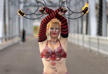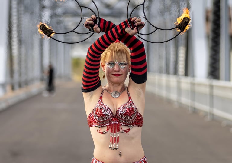 Miss Fire Feet lights up your event with mesmerizing fire spinning performances.