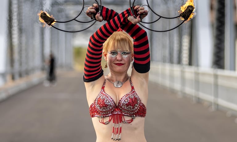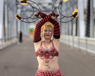 I had the privilege to watch her perform at the Rugedman Brewery a year or so ago. She was amazing. She put on a great light show with the multi colored poi. And the crowd was mesmerized with each movement as she spun the fire staff with her feet. Definitely worth seeing.